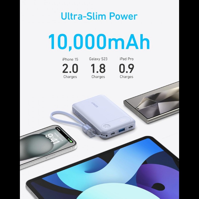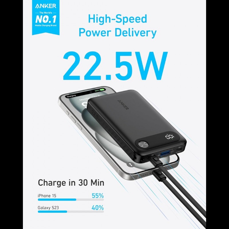 Anker 10000mAh 22.5W Power Bank with USB-C Cable.