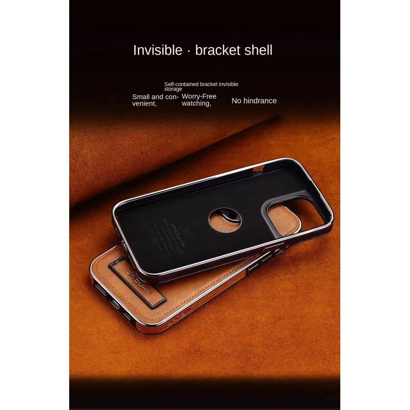 High-End Electroplating bracket Leather Case For iPhone 12 To 16 Pro Max