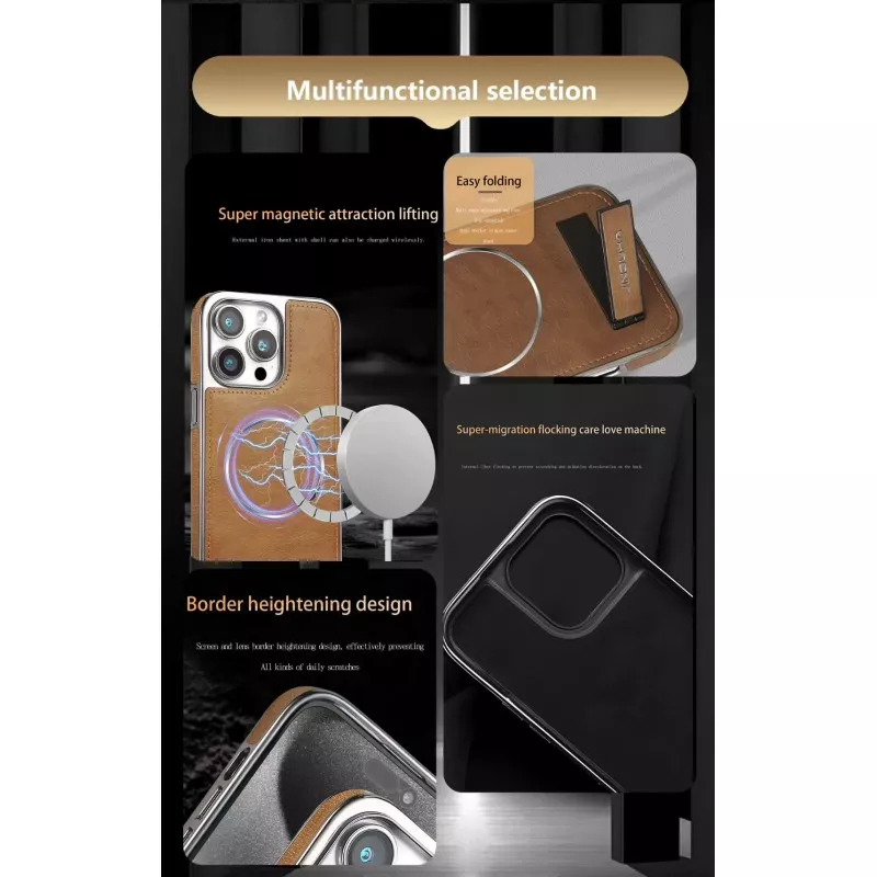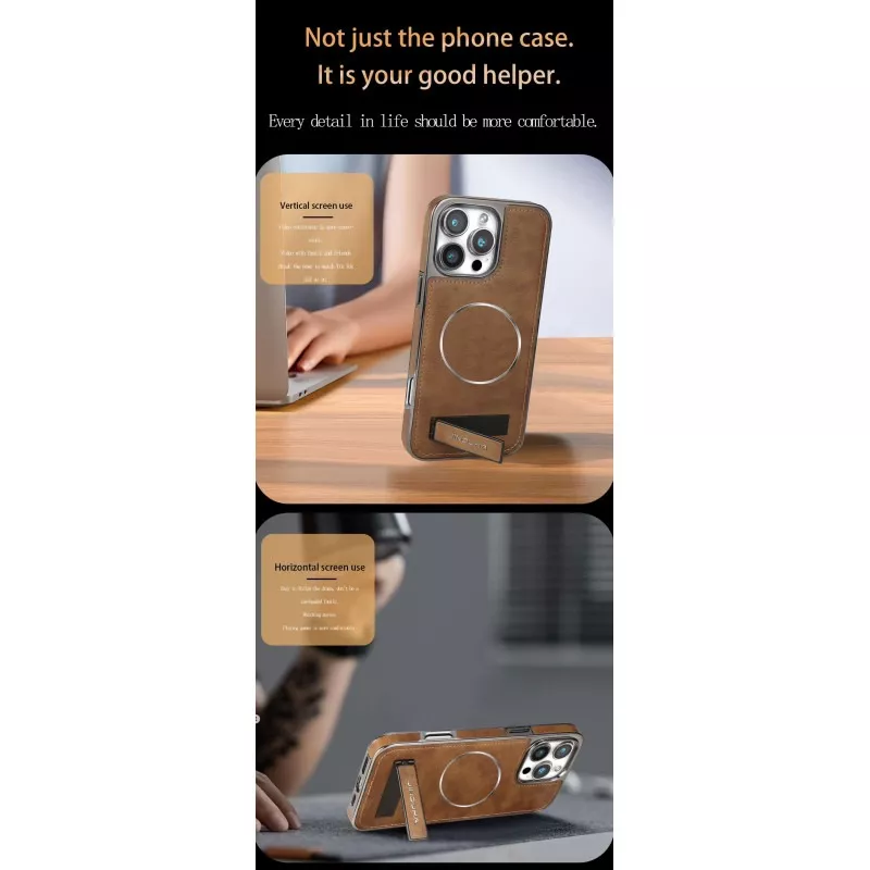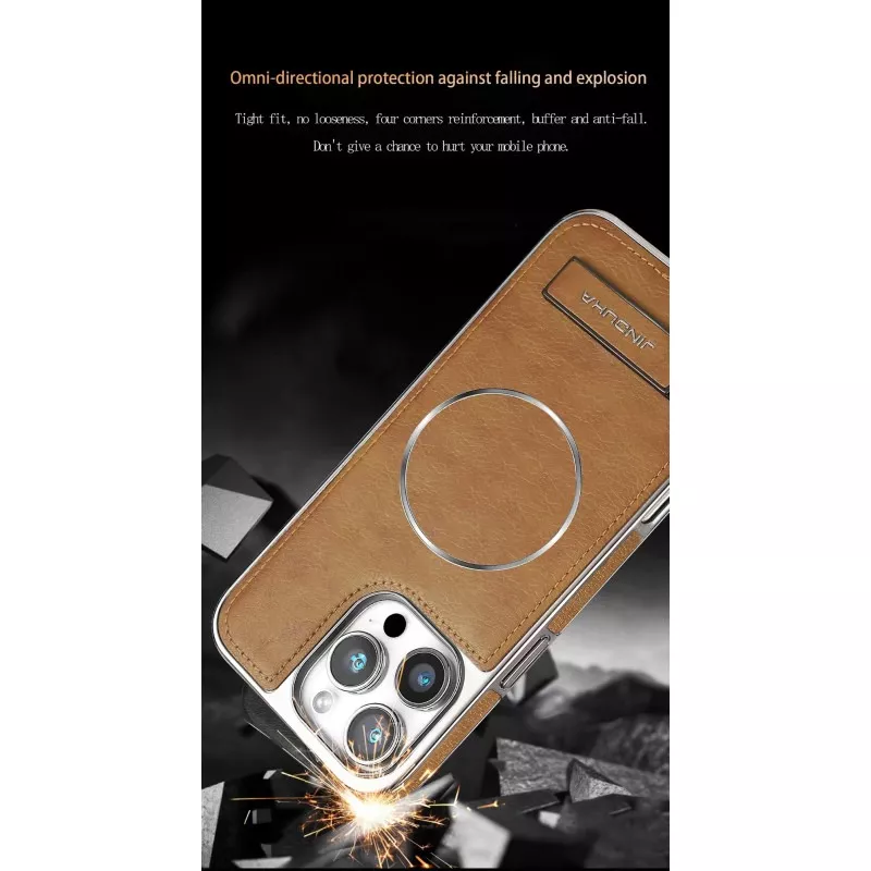Jinduka Premium PU Leather Magsafe Supported Kickstand Hard Case For iPhone
