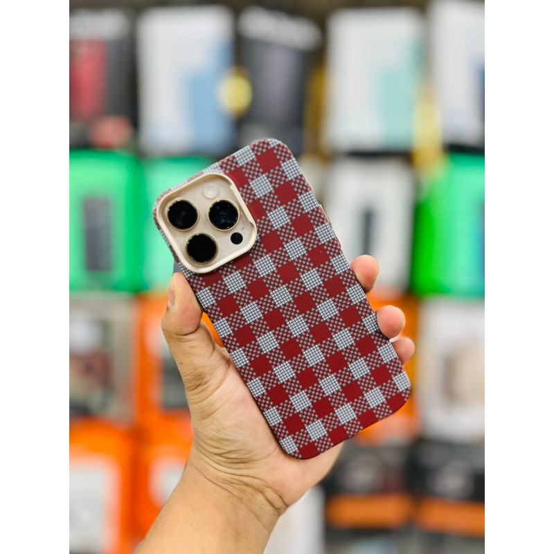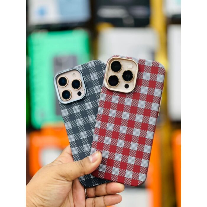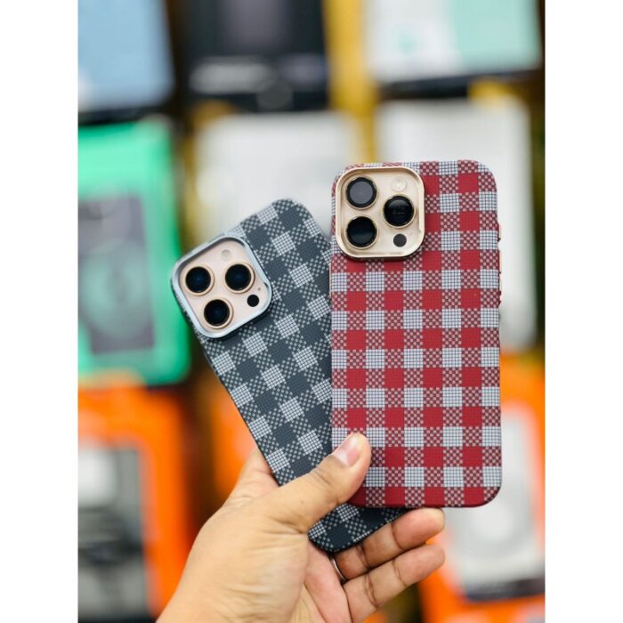 LUXO Life New Checkerboard Carbon Fiber Texture Cover for iPhone – Slim Magnetic Case with Metal Camera Frame