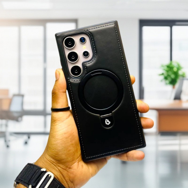 Protect, power, and perform with the Suitable MagSafe Supported Ring Stand Business Leather Case — the perfect fusion of style, protection, and innovation for your Samsung Galaxy Ultra